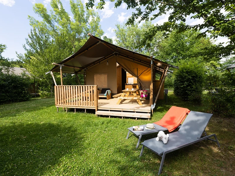 Children of all ages dive endlessly in the extensive pool complex including a paddling pool and high slide. The whole area is surrounded by greenery and parasols with loungers and the terrace with a (snack) bar within easy reach. Order something tasty and enjoy your playing family as well as the view over the surrounding Gascony countryside. This is a real camping holiday.