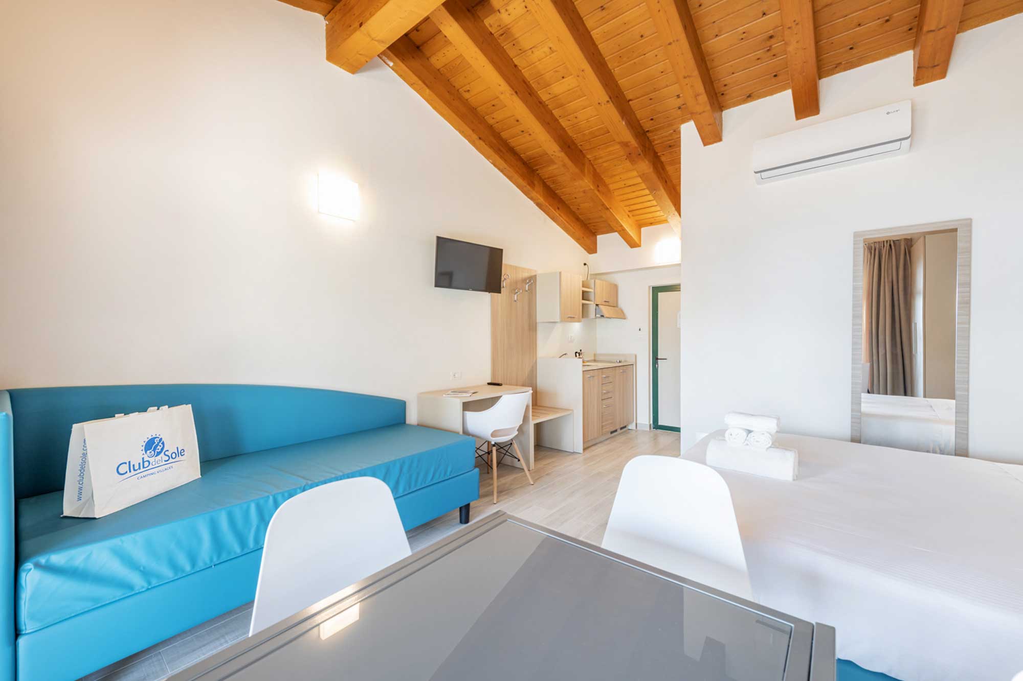 The kids are provided with a large outdoor adventure playground, while volleyball and other types of activities can be enjoyed on the beach. Lovers of Italian cuisine will find a large number of tasty dishes to sink their teeth into at the onsite restaurant, while guests who want to put together a picnic to eat beside the lake will find everything they need in the onsite supermarket.