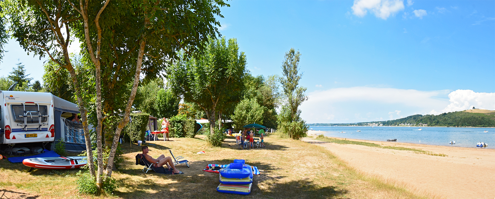 - Lake with sandy beach and lots of water sports